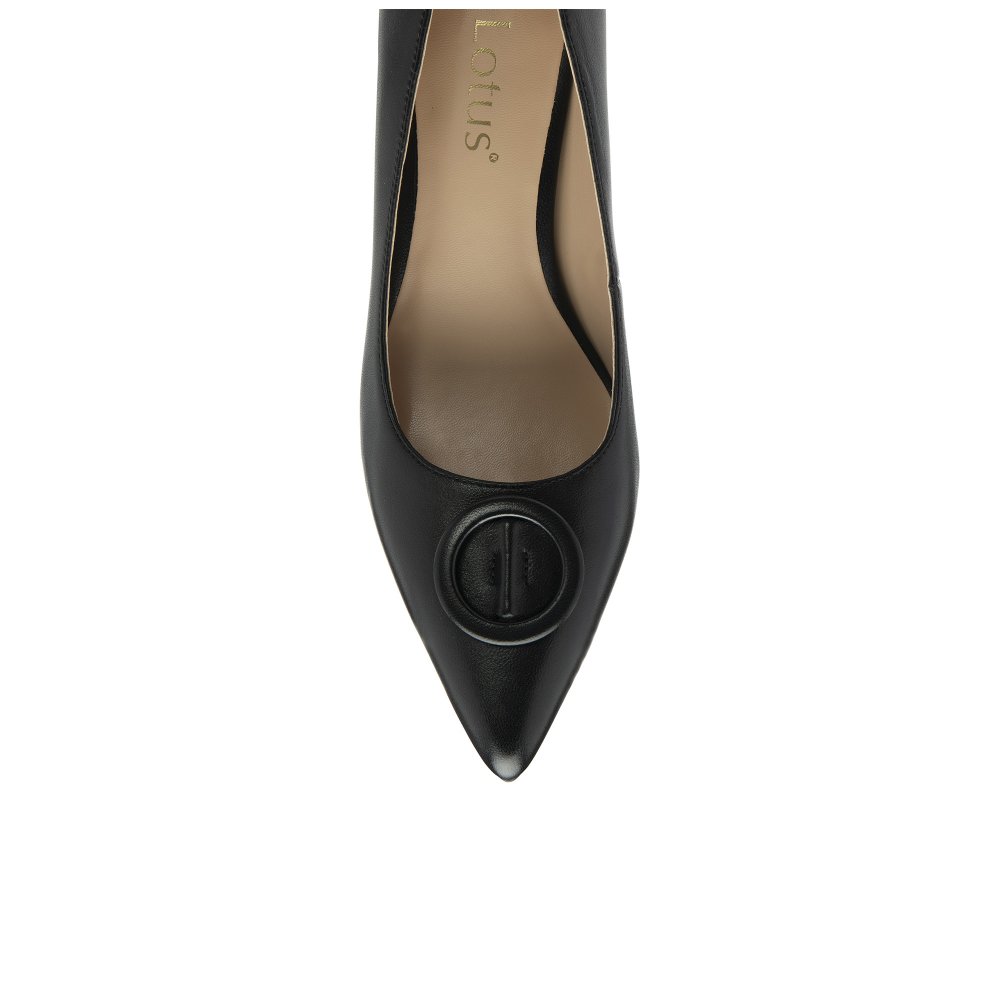Highlight your style and sophistication with every step in the Lotus Henley court shoes. Whether you are wearing them for the office, an evening soiree, or a formal occasion, these women’s court shoes seamlessly transition from day to night, adding a touch of glamour to any ensemble. With decorative buckle detailing on the pointed toe and featuring a 6cm angular stiletto heel that beautifully elongates the legs, this timeless silhouette is designed for the modern woman who appreciates elegance, style and comfort.