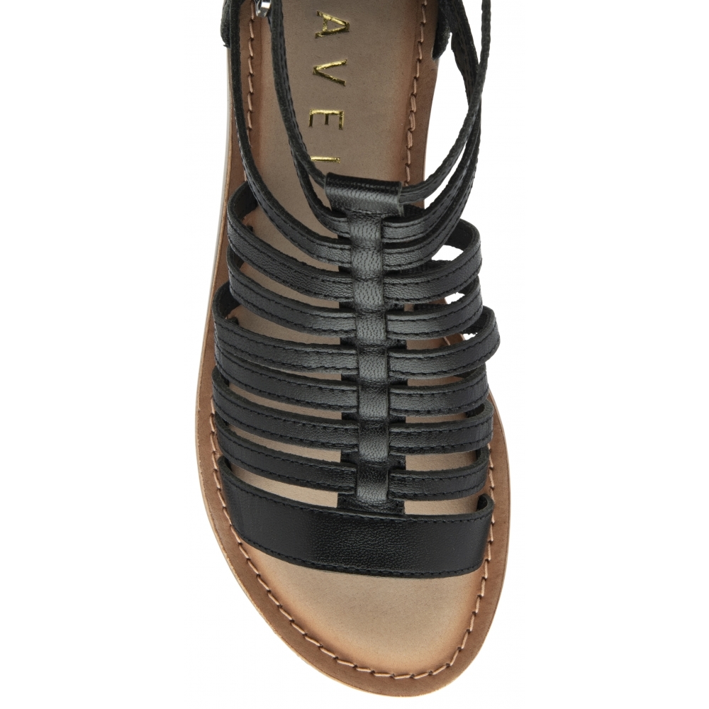 Bringing gladiator styling to spring/summer, Ravel’s almost-flat sandal Etton in black burnish leather is a marvel of the new collection. This women’s black leather sandal has a wearable 1cm heel, a cushioned insock for day to night comfort and a full back for true gladiator styling. The upper of this ladies’ sandal features multiple slim straps that work up the foot and fasten to the side of the heel with two adjustable buckles. The simplicity in design of the Etton sandal speaks to Ravel’s desire for gorgeous shoes for all. Team with all your day to night looks to transform them effortlessly.